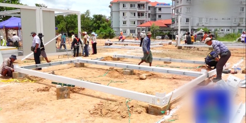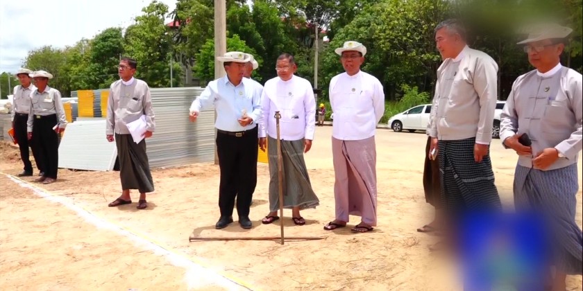 After the meeting, the Union Minister and officials visited the work site at the Dhana Theikdi Ward in Zabuthiri Township where modular houses were being installed for temporary housing of the staff. Officials explained the installation process of the modular houses. A total of 188 modular houses measuring 20 feet long and 10 feet wide will be constructed for temporary housing of the staff families, with 64 units planned for Phase 1 and 124 units for Phase 2.