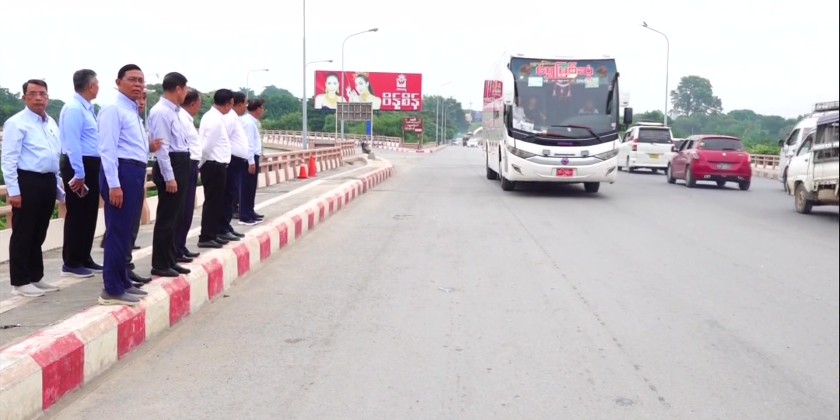 At the Ayeyawady Bridge (Yadanabon), the Union Minister and party instructed on continuous preservation of the bridge for long-term durability. The Ayeyawady Bridge (Yadanabon) was affected by Mandalay earthquake and replacing works for Bracing and Gusset Plate was completed.