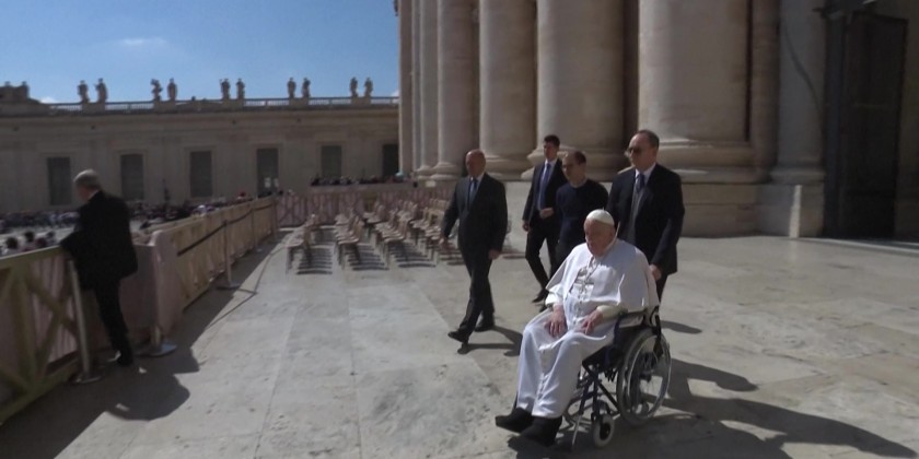 Francis is, in theory, undergoing two months of convalescence following his life-threatening health scare, with strict rest, no public activity and no contact with crowds.