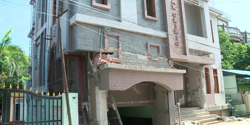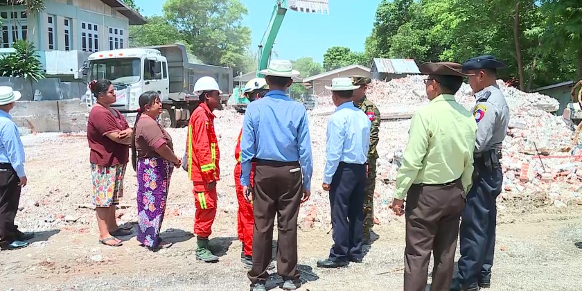 The Chief Minister and party later inspected the clearing the debris of collapsed houses in downtown Sagaing. The clean-up activities are being carried out by the collective efforts of the Tatmadawmen, Myanmar Police Force, Fire Brigade members and social organizations.