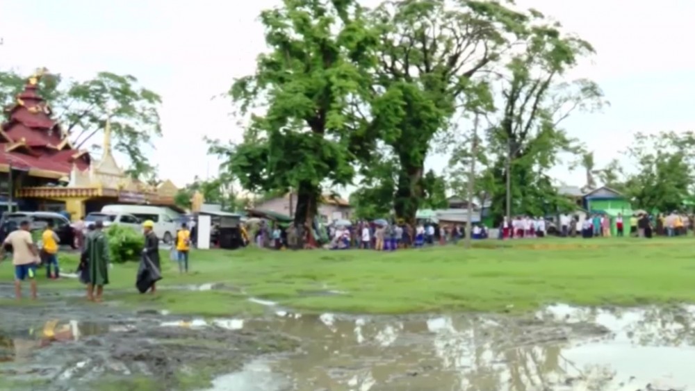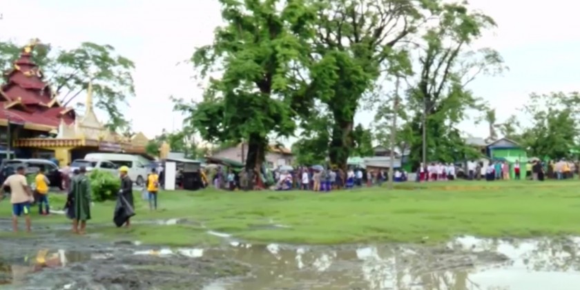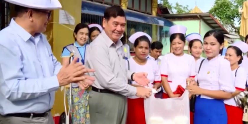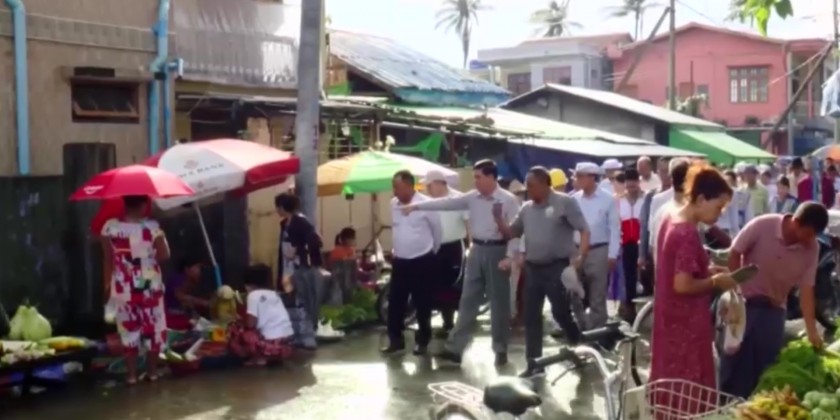 They also observed rehabilitation and prevention activities for dengue fever. First, the chief minister and party visited Wingaba square in Sittway City, where they observed the joint cleaning operating alongside police officers and residents.