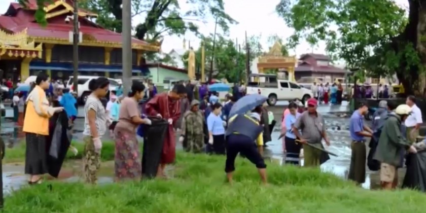 Chairman of the Rakhine State Natural Disaster Management Committee Rakhine State Chief Minister U Htein Lin accompanied by deputy ministers, state ministers and other officials viewed a collective cleaning in Sittway Township.