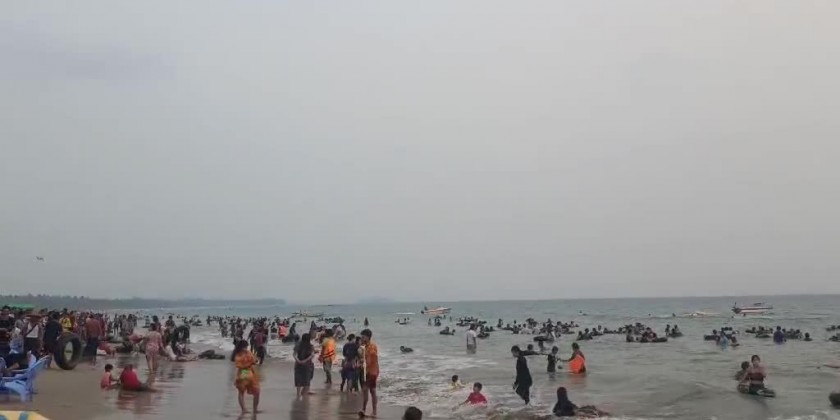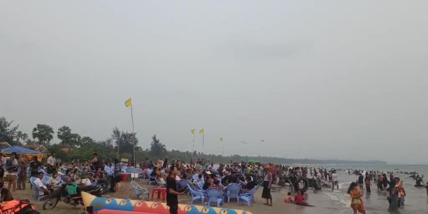 Ngwe Hsaung Beach in Pathein Township of Ayeyawady Region is teeming with visitors during the Myanmar New Year Thingyan holidays. Ngwe Hsaung Beach received an increased number of visitors compared to the previous year.