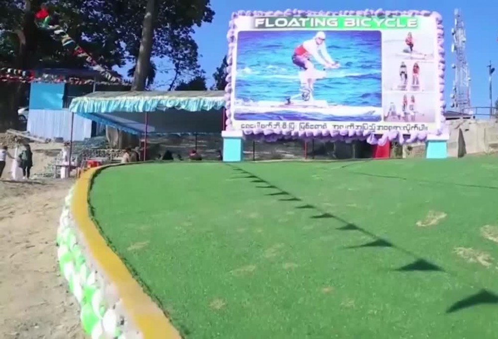 Starting from 17th December, the visitors can ride the floating bicycles happily started from near Si Pin Tharyar bank of Ayeyawaddy to the middle land of the river.