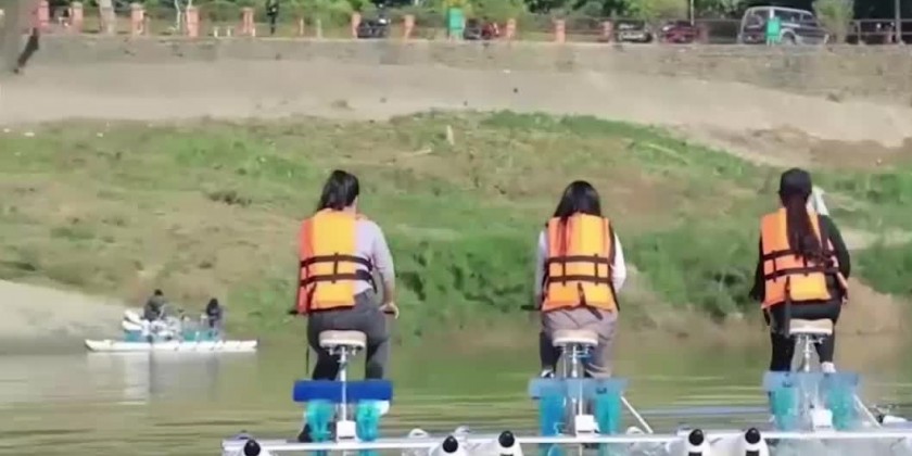 Sai Khun, Owner, Dolphin Hydro Bike (Floating Bicycle), said " The visitors can ride Dolphin Hydro Bike (Floating Bicycle) from 9:00 am in the morning to 4:30 pm in the evening. Likewise, the people who will ride the floating bicycle have to wear life jackets and our skillful staffs will check the bikes before they go to the river."
