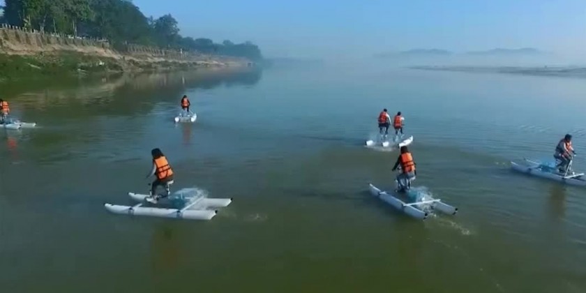 People who want to enjoy the nature of autumn and have a spirit of adventure can ride floating bicycle in the River Ayeyawaddy at Myitkyina township of Kachin State.