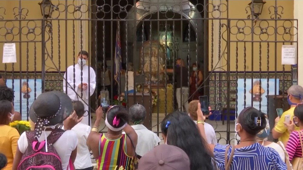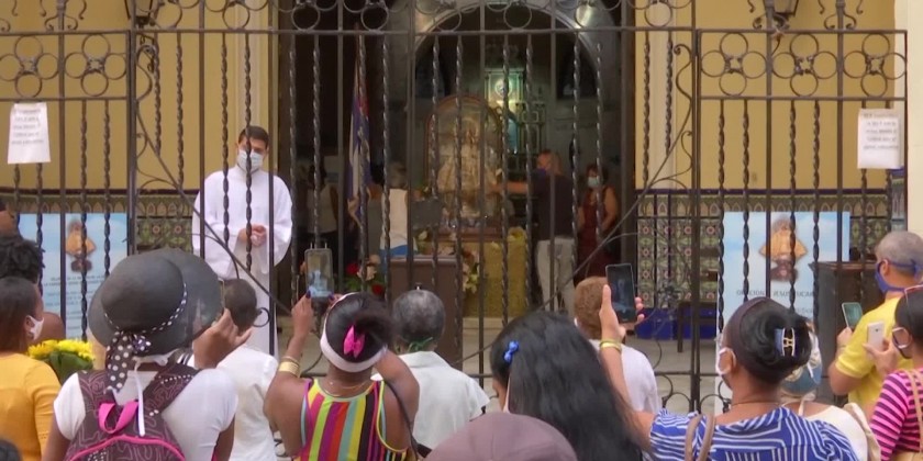 Dozens of worshippers made their way to the shrine of "Our Lady of Charity" on Tuesday, the patron saint of Cuba, and an important figure in the Afro-Cuban Santeria religion, in spite of a strict lockdown in Havana due to the coronavirus.