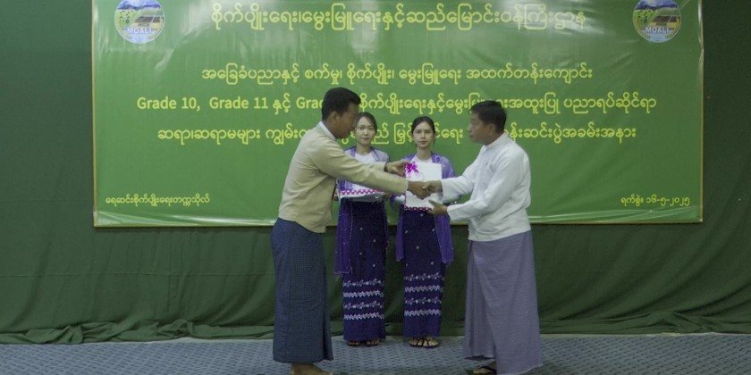 Afterwards, the Deputy Ministers presented certificates of completion to the trainee teachers and presented gifts to the training instructors. During the course, experts from the Yezin Agricultural University, University of Veterinary Science and the Ministry of Science and Technology provided lectures on relevant subjects and facilitated discussions to enhance expertise in each lesson.