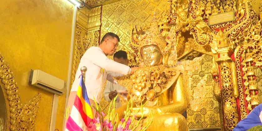 The inauguration ceremony of the Festival of Marn Aung Myin (Pyidaw Pyan) Buddha Image, in Zalun Township, Hinthada District, Ayeyawady Region, took place at the pagoda on the morning of February 24th. The ceremony was attended by the Region Chief Minister U Tin Maung Win and his wife, region ministers and their spouses, departmental officials, and local residents.