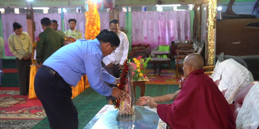 Later, the Region Minister and party paid homage to the joint secretary of the State Sangha Nayaka Committee Hnget Pyit Taung Monastery Presiding Sayadaw Buddhanta Marnita and donated offertories. The Chief Minister and party then donated cash for elders from Hnget Pyit Taung Home for the Aged.