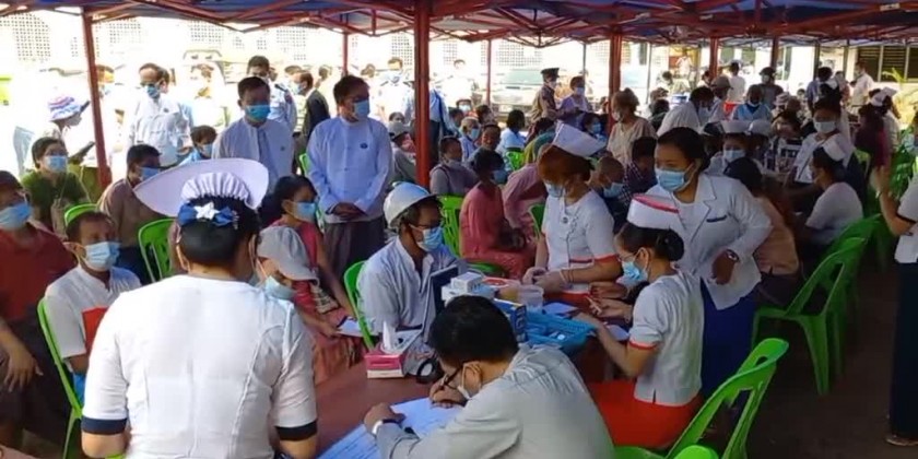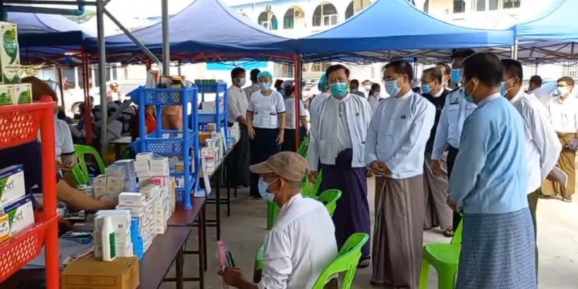 During the inspection at the 500-bed general hospital in Bago, the Chief Minister held talks with the employees who have come to receive the free healthcare services and concerned officials to ensure that medicines are sufficient.