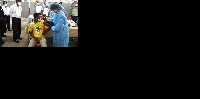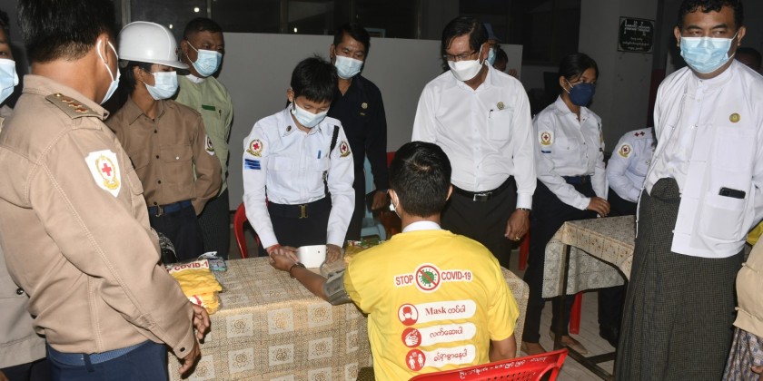 The Chief Minister and party looked into body temperature screening and measuring of oxygen level in the blood to 150 people who would receive COVID-19 doses at Maha Sasana Beikman and also administering booster doses.
