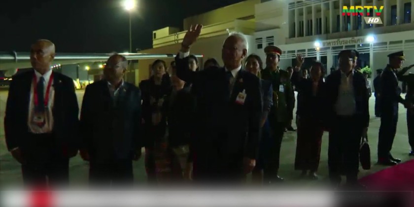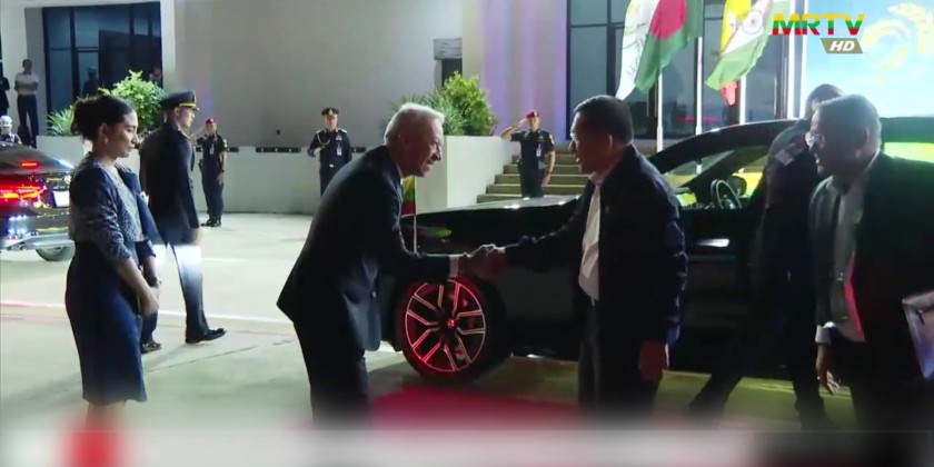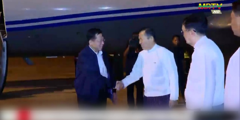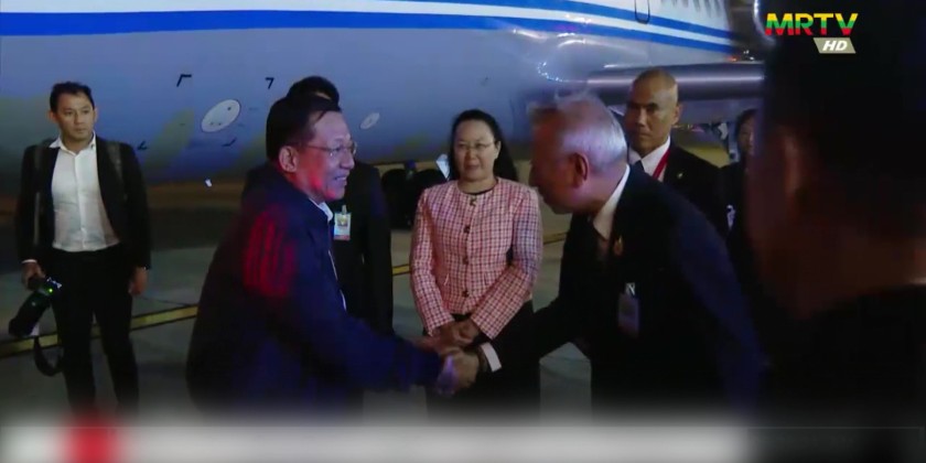 On arrival at Nay Pyi Taw Airport, they were welcomed by Deputy Chairman of the State Administration Council Deputy Prime Minister Vice Senior General Soe Win, Council Secretary, Council Members, Union Ministers, senior military officers from the Office of the Commander-in-Chief of Defence Services, Commander of the Nay Pyi Taw Command, Thai Ambassador to Myanmar and officials.