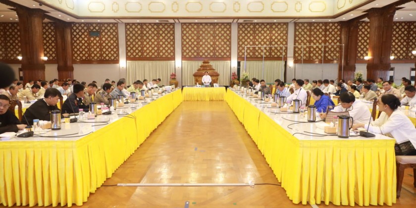 Yangon Region Chief Minister U Soe Thein held a meeting with regional-level officials at the regional government office.