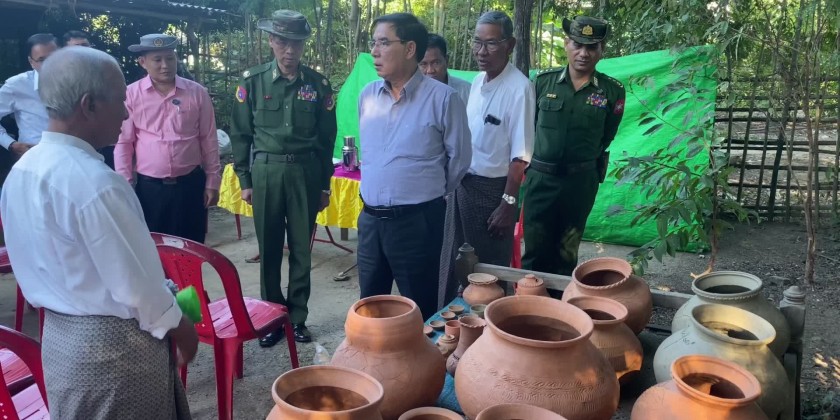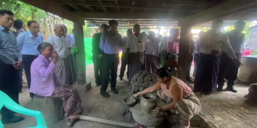 First, in PhaungKan Ward, the Chief Minister held a meeting with members of the cooperative enterprise producing Myanmar traditional pots which discussed loan, training to produce value-added products, designs and quality and sale system.