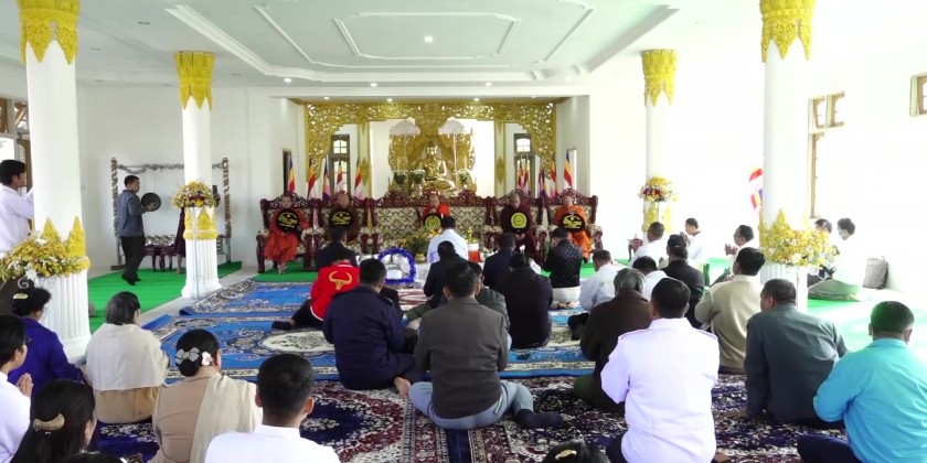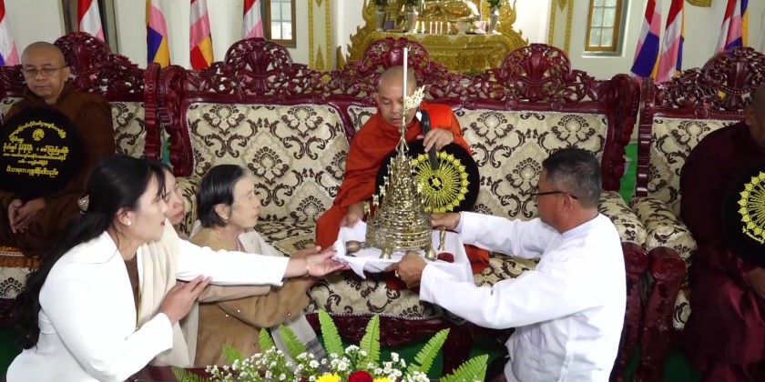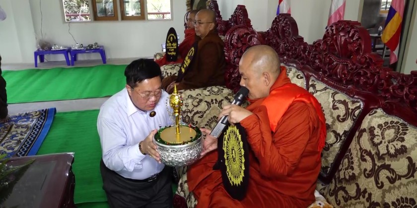 After listening the religious sermons administered by Parami monastery sayadaw, the Chief Minister and well-wishers offered pennant-shaped vane and golden umbrella to the sanghas.