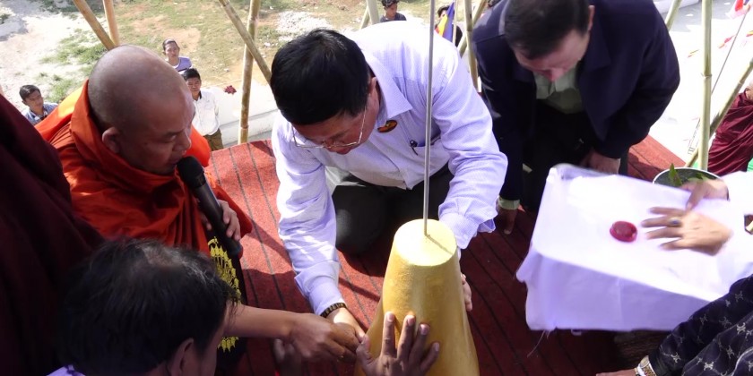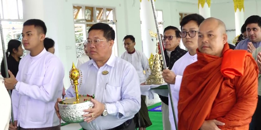The State Chief Minister, the State Secretary and officials attended golden umbrella hoisting ceremony and merit sharing ceremony of Aye Chan Kabar Aung Pagoda at the Buddhist Missionary Parami Monastery in Lashio.