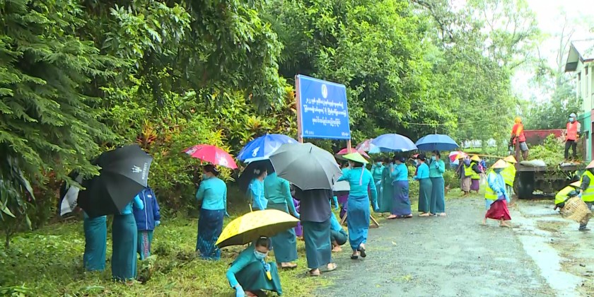 Cheif Minister U Khet Htein Nan and officials encouraged the campaign, and presented cash assistance to the participants. The collective cleaning task was also carried out at No.9 Basic Education High School.