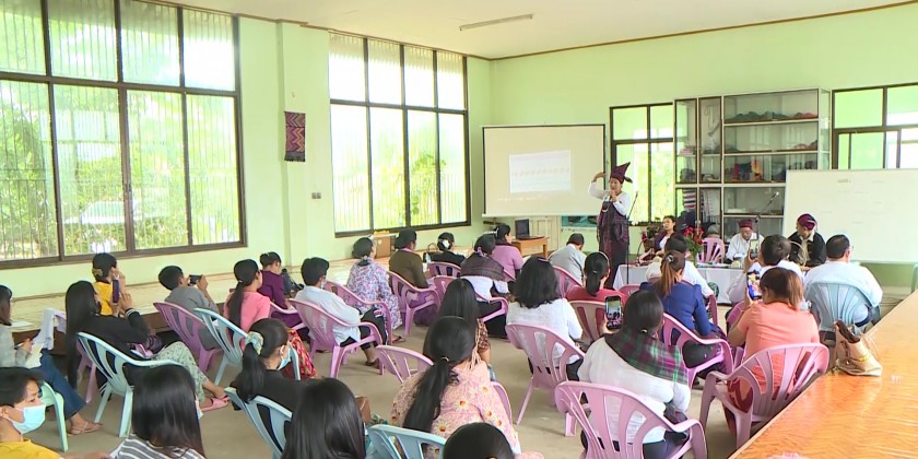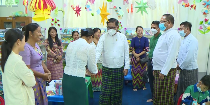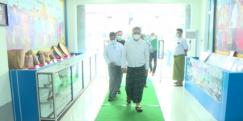 On arrival at the Weaving Training in Sitapu Ward, the Chief Minister joined the Workshop on safeguarding the traditional heritage and weaving training. They also viewed the displays of Kachin traditional clothes and urged for development of the traditiona weaving process.