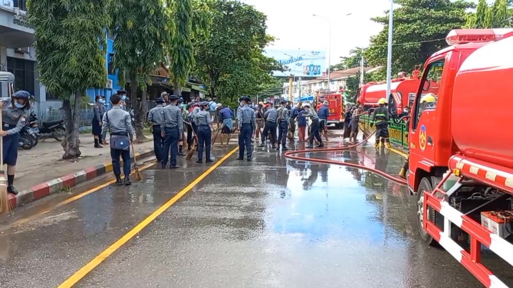 Bago Region Chief Minister U Myo Swe Win on 8th October inspected the cleaning campaign along Bogyoke Road in downtown Pyay and along Yangon-Pyay Highway. The Chief Minister encouraged the departmental staff, local residents and members of the local battalions who took part in the campaign.
