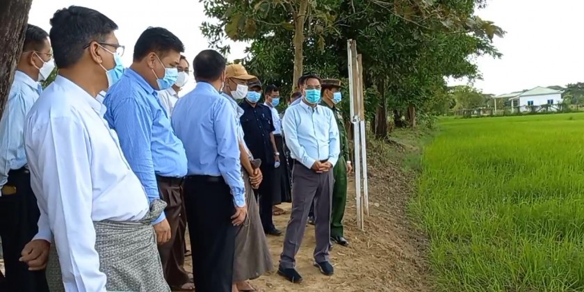 On arrival at monsoon paddy plantation in ThinTawYoe Village-tract in Thayawady Township, the Chief Minister instructed for cultivating triple crops with the use of quality bean species, timely availability of agriculture inputs and sufficient supply of irrigation water.