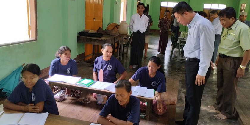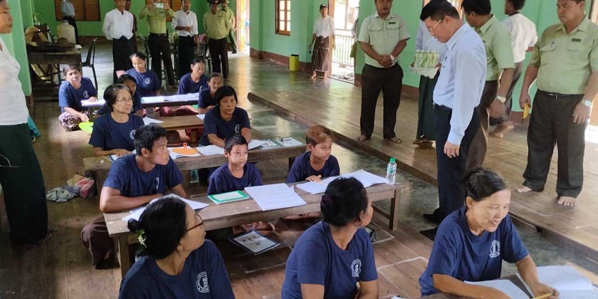In Ngayokaung Township, the Chief Minister inspected construction of the Chaungwa Bridge linking the Township and Gaw Yan Gyi Island and made discussions with concerned officials for this project. Also, in the Township, the Chief Minister inspected the basic literacy reading and teaching classes and provided foodstuffs.