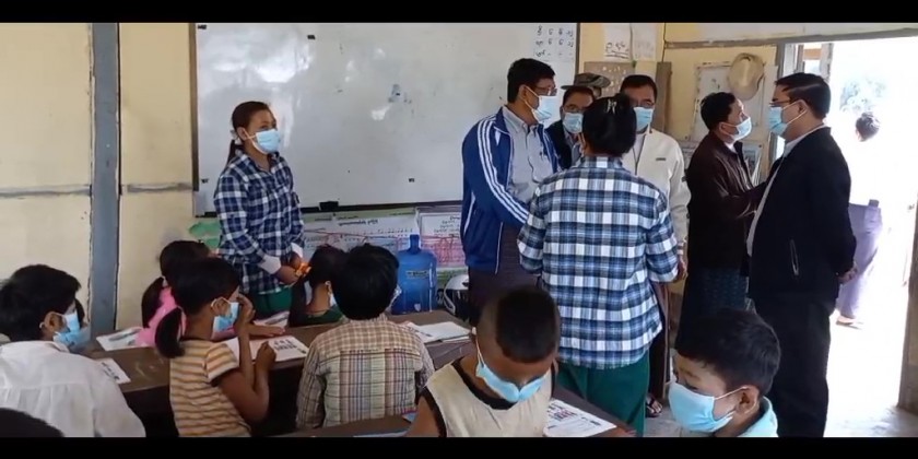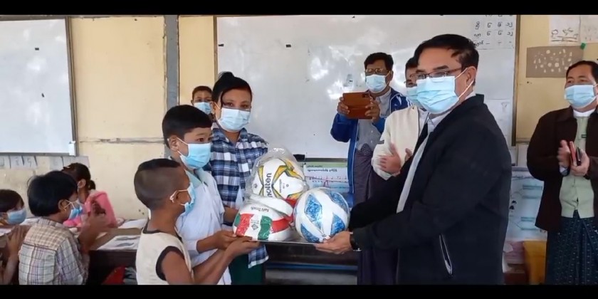 On arrival at SanYway Station Hospital, the Chief Minister discussed for sanitation, proper flow of water and staff affairs. He also provided 500,000 kyats for the staff. The Chief Minister and party later visited the Primary School in ZayatGyi Village and gave instructions on planting the shady trees and better drainage system. He also provided 500,000 kyats for the teachers and sports gears for the students.
