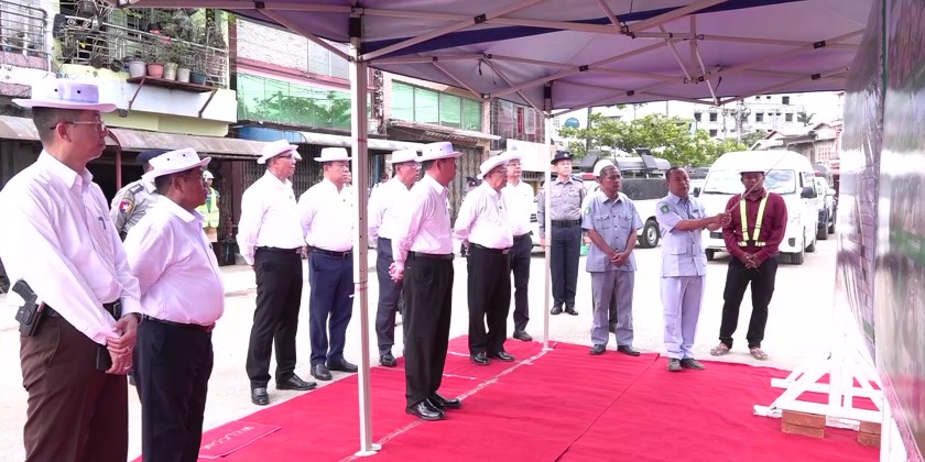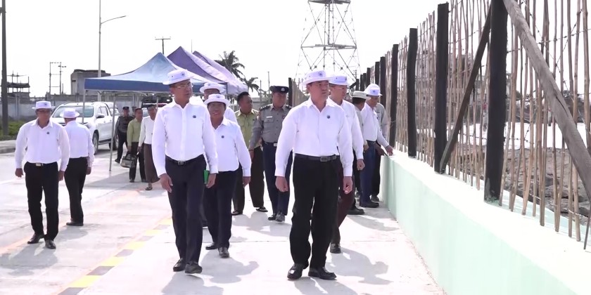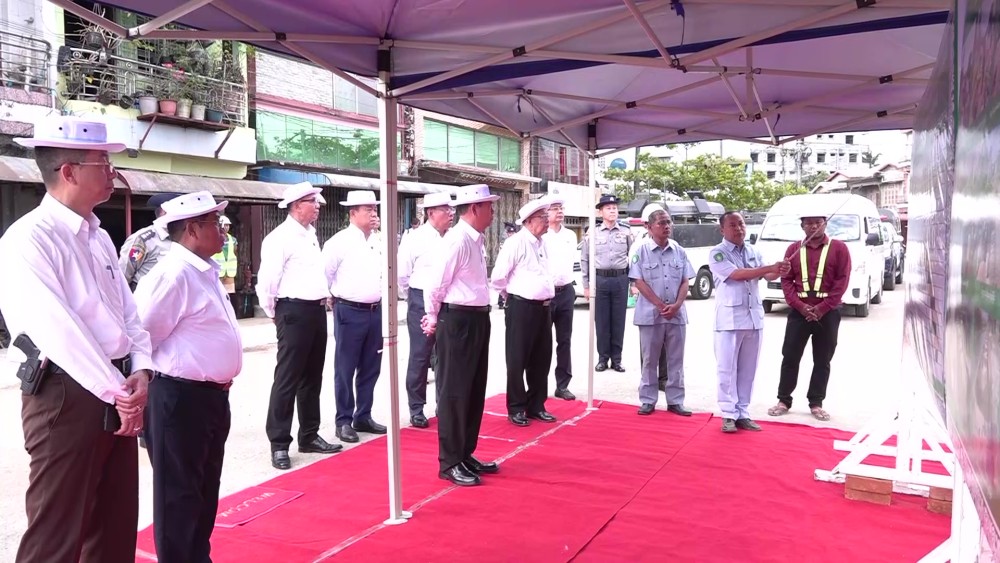They also inspected progress on platform construction and drainage works along Mizan Strand Road, as well as excavation work at KhaWarThae Creek. The Chief Minister later inspected the road upgrading works at the Sittwe Hotel intersection, including stone retaining walls, road paving, widening and completion status of Parapet wall’s construction.