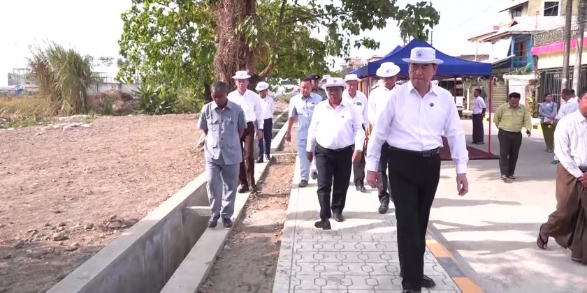 Rakhine State Chief Minister U Htein Lin inspected regional development projects in Sittwe on Friday, accompanied by relevant officials.