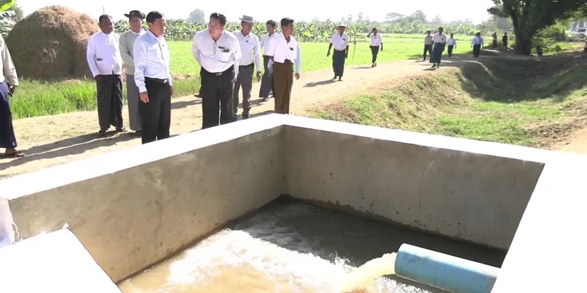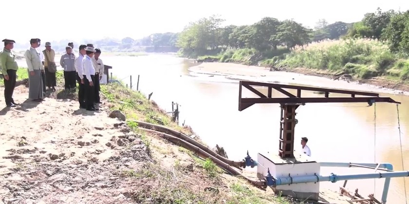 On arrival at Kyaukchat Village-tract, Nay Pyi Taw Council Chairman inspected water irrigation from Sin Thay Creek through solar water pumping system and coordinated necessities.