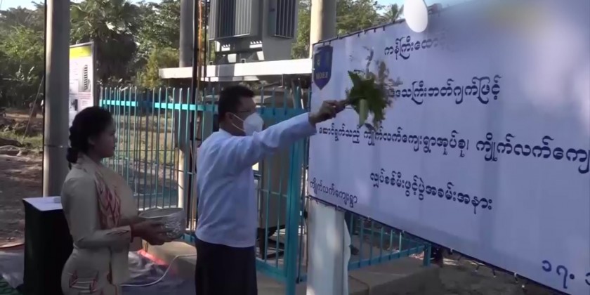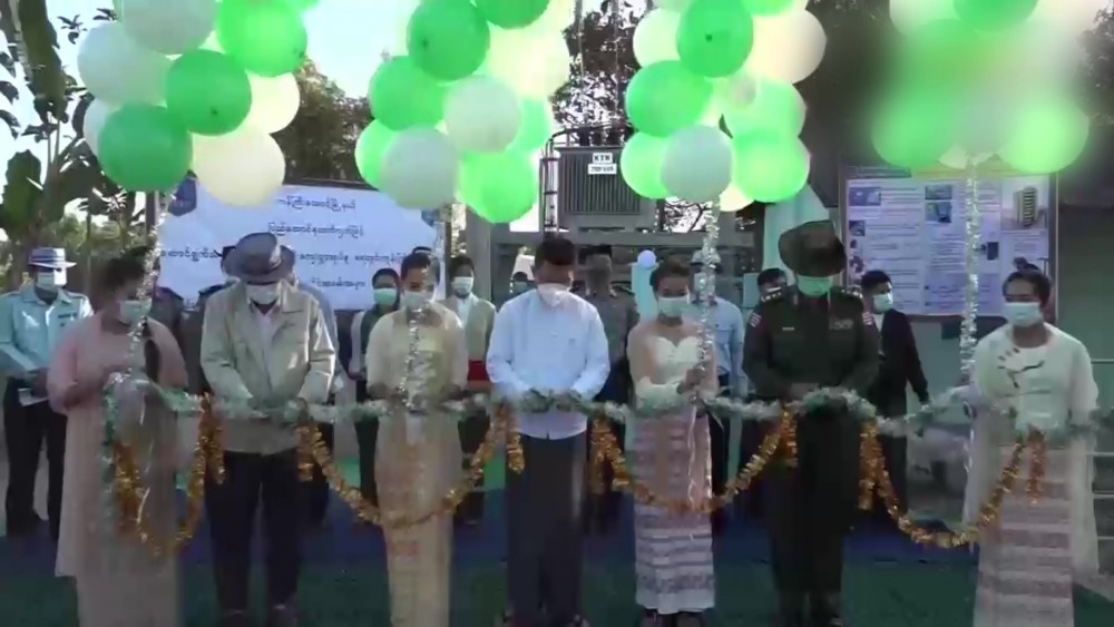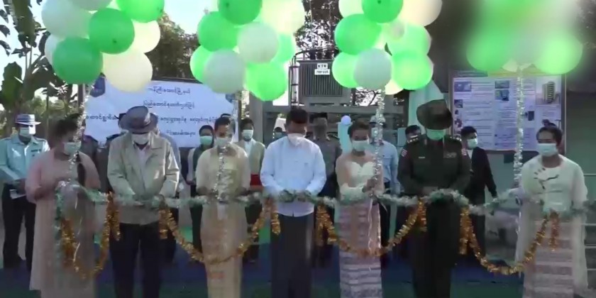 Ayeyawaddy Region Chief Minister U Tin Maung Win ceremonially opened 11 KV grid, 200 KVA transformer and 400-volt grid in YayTwinKoneKyi Village of KanGyiDaung Township. The Chief Minister also visited the Basic Education Middle School in the village, held talks with teachers and provided healthcare and teaching aid.