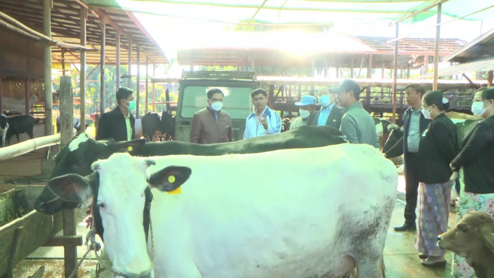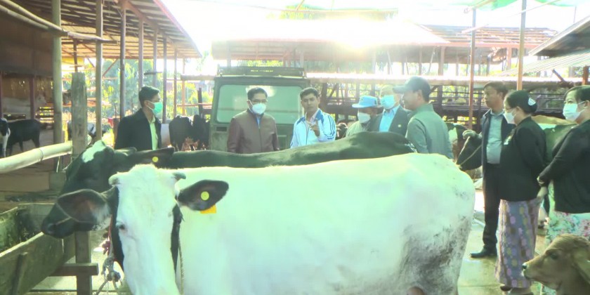 Kachin State Chief Minister U Khet Htein Nan on 26th November visited cow breeding farm and production of dairy products at Shwe Nyaung Pin Ward in Myitkyina. He instructed for boosting production and provided cash and other assistance.