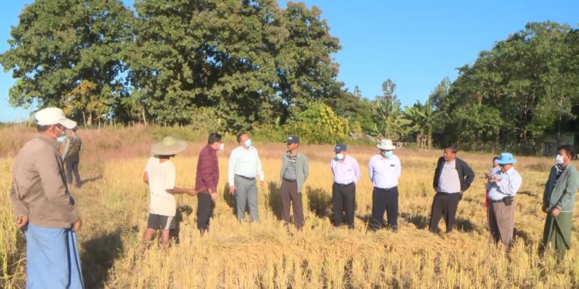 The Chief Minister and party later arrived at Hand Weaving Workshops and asked after the investment and market condition and production of traditional attires. On arrival at Myitkyina Agriculture Institute, the Chief Minister inspected the construction of research farm, Napier grass plantations, lecture halls, laboratory and warehouse. The Chief Minister also inspected farmland in Sitapu Ward to cultivate sunflower plantations as a winter mixed crops.