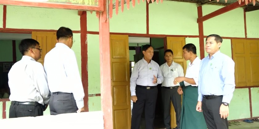 On Thursday, the Union Minister visited Min Hla Thazi Village in Pyaw Bwe Township, heard reports on implementation of Smart Village project, Emerald Green Village project and Responsible Business Fund.