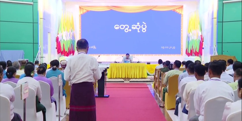 Chief Minister U Saw Myint Oo provided update reports on the preparations for the election, confiscation of illegal goods and combating efforts, implementation of agriculture, livestock breeding, fishery industry, food sufficiency, MSME development, tourism, education, health and sports sectors as well as the deportation of illegal immigrants, provisions to the displaced persons and plans for solar powered generation.