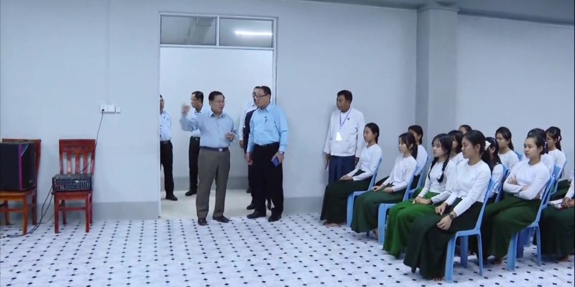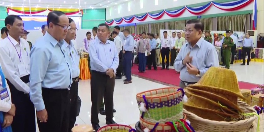 After the meeting, the Acting President viewed the display of MSME products and gave necessary instruction to the officials. They later proceeded to Kayin State Youth Center, and heard reports on work implementation and future plans. The Acting President instructed for efficient utilization of the facility, providing knowledge for benefit of the state. They then took a tour of the centre, observing the training of indoor games, conducting youth talks, vocational training, library, hostel and mess hall. The Acting President and party later took a tour around Hpa-An University and down town Hpa-An, and inspected the construction progress of Zwegabin Stadium.