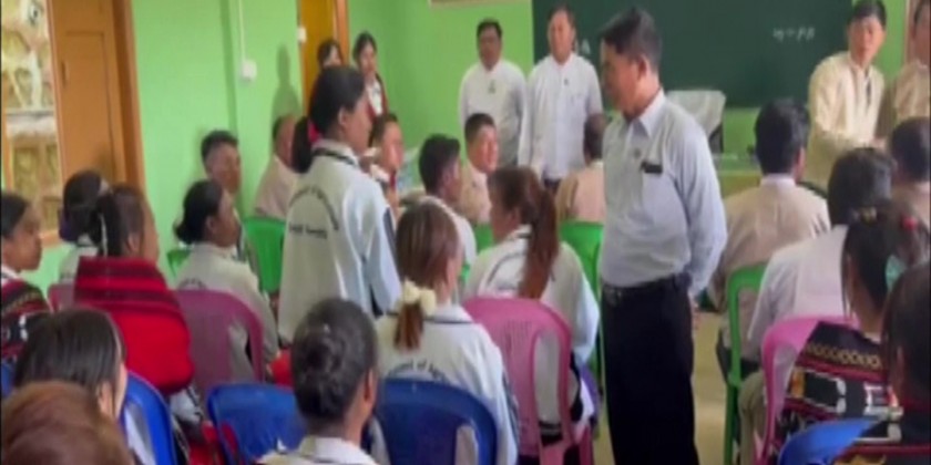 Union Minister for Agriculture, Livestock and Irrigation U Min Naung met with the concerned officials from agricultural sector at the meeting hall of the Department of Agricultural Land Management and Statistics in Lay Shi Township, Naga Self-Administered Zone on Tuesday.
