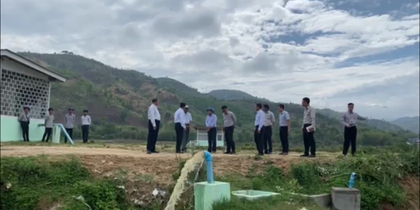 First, the Union Minister and party looked into measures for irrigated water with solar pumping system around Namt Khin creek in Keng Phaung village that was implemented by 2021-2022 FY fund of Kengtung Township Department of Rural Development.
