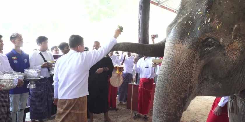 The Chief Minister, the State Ministers and well-wishers also sprinkled Yadana elephant and the hall with scented water and gave feeds.