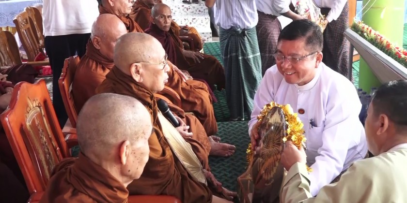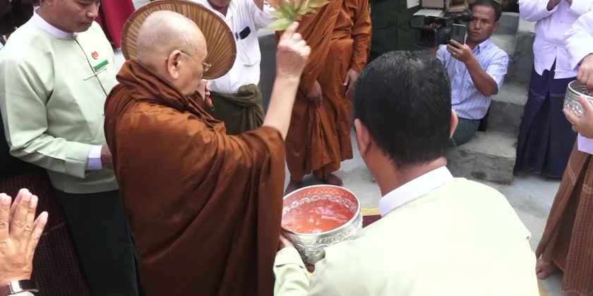 The Chief Minister and well-wishers offered holy water and incense as well as donated offertories to the sayadaws and monks.