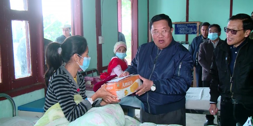 They also inspected MatMan Fire Station and provided cash assistance. On the 16th, the Chief Minister and party visited Matman People’s Hospital and encouraged the patients. They also inspected construction of retaining wall along MinYanAung Road to Bogyoke Road.