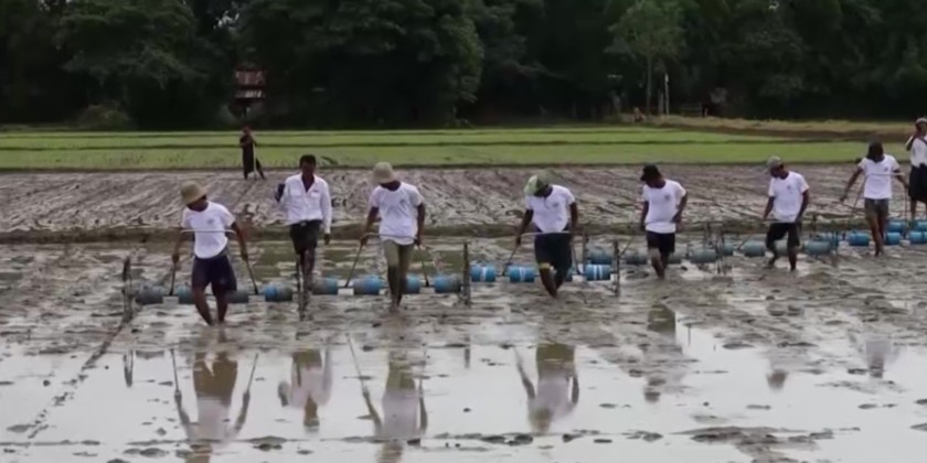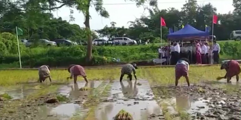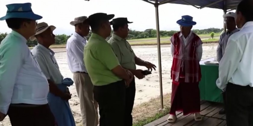 Moreover, they observed paddy planting using a Drum Seeder on 16 acres of land in Ngagyigayat village. Additionally, they met farmers from Maubin district and government officials in Maubin, discussed challenges affecting monsoon paddy cultivation in the region and distributed seeds to farmers under the State Economic Promotion Fund program.