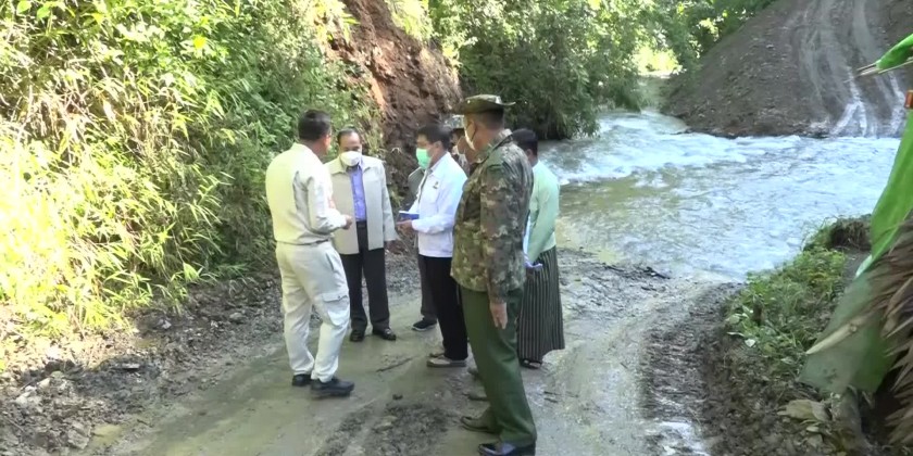 The Chief Minister and party later inspected the sites to be transform as the highland farming to substitute the terrace farming system, and chosen site for construction of KyaWee Creek Crossing Bridge. They then met with the ethnic people from MaKyan and SanTone Villages, and explained the regional development endeavours.