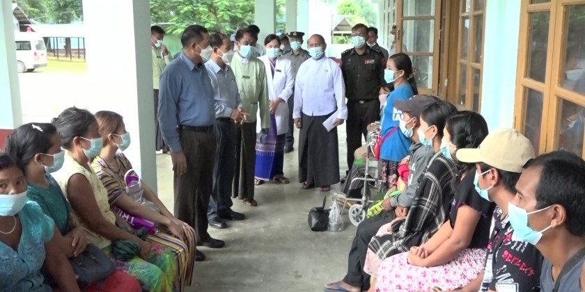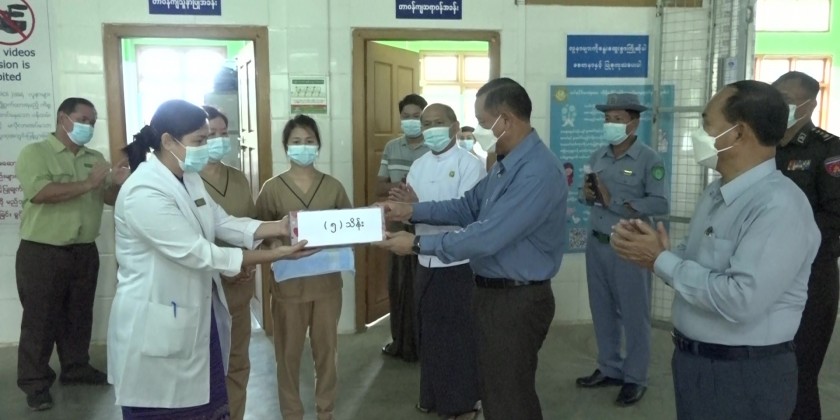 The Union Minister and party later arrived at the Sport Grounds, and inspected the stadium, bleachers, beautifying and fencing the football ground. On arrival at Hkamti People’s Hospital, the Union Minister and party encouraged the local people receiving treatment, and provided cash assistance to the health staff and patients.
