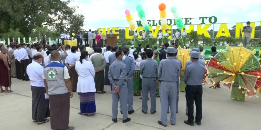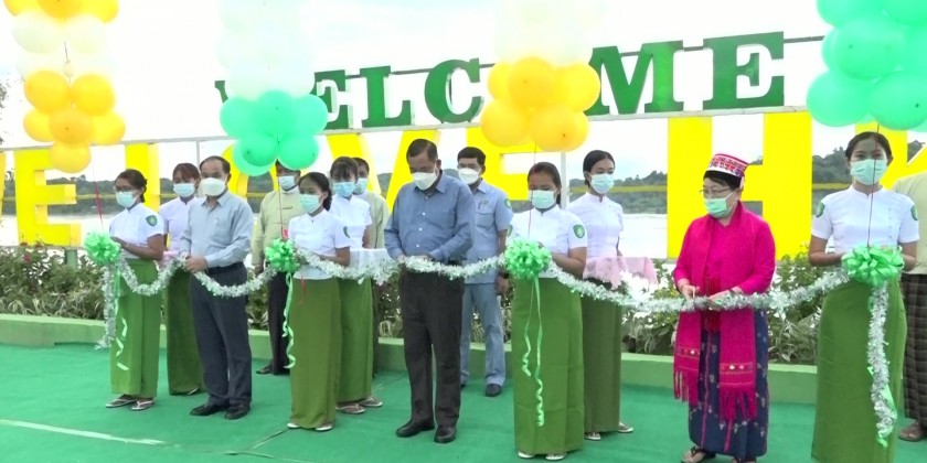 At the launching ceremony of “We Love Hkanti” signboard and steel handrail along the strand road, Chief Minister U Myat Kyaw made a speech. After formal opening of the ceremony, the Union Minister and party inspected the completed installation of steel handrails along the strand road.