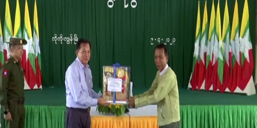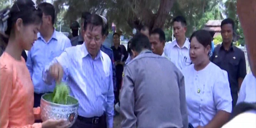 He urged all to strive for achieving more progress in the region. The Senior General later presented foodstuff for the departmental personnel, and enjoyed the waster throwing together with the departmental personnel, local people and community elders. The Senior General and party later toured round the Coco Kyun Township by a mortorcade.