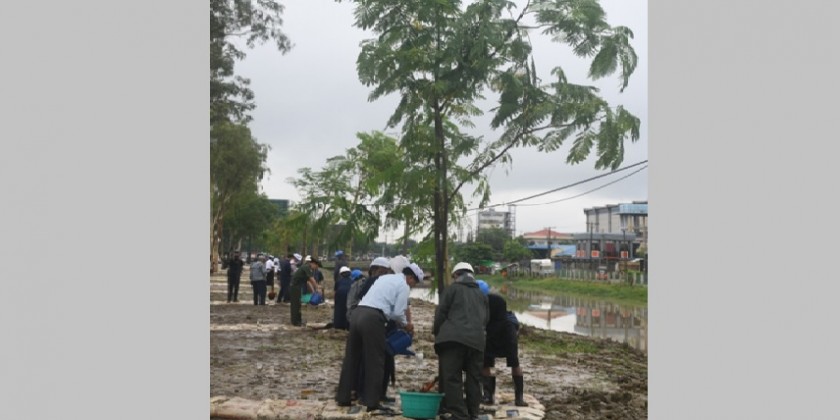 Yangon Region Chief Minister U Soe Thein, together with officials participated in the tree planting ceremony, held in Hlaingthaya (West) Township on 24th June.