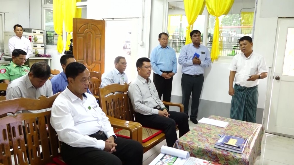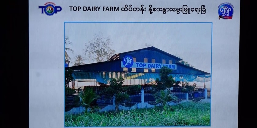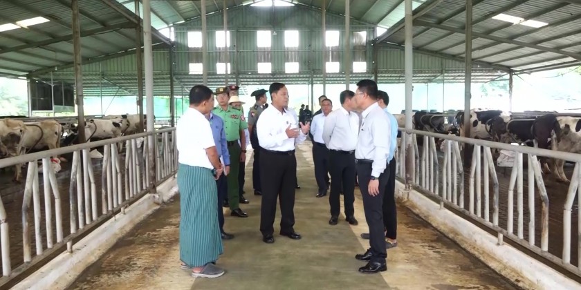 At the Small Scale Industries Department, the Union Minister and party inspected Top Milk Htaiktan qualty milk and dairy product industry in Pae Yon Seik village in Nyaungdon township and officials reported on breeding milk cows and cultivation of nivea grass for feedstuff.