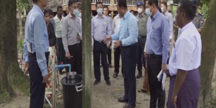 First, the Union Minister inspected the completed water access project in KanPhyu Village of Paung Township implemented by the Department of Rural Development funded by the rural development project and locals for 217 households.