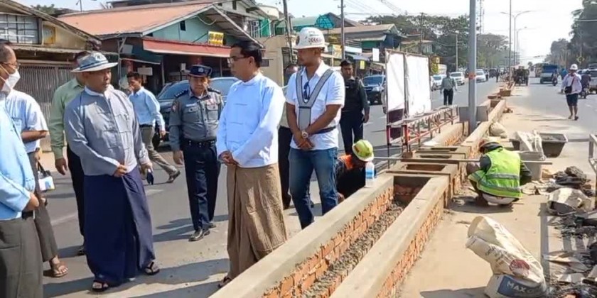 Next, the chief minister and party inspected the construction of traffic island and lamp posts on Thanatpin Road and instructed to supervise for easing traffic congestions at the entrance and exit roads of the township.